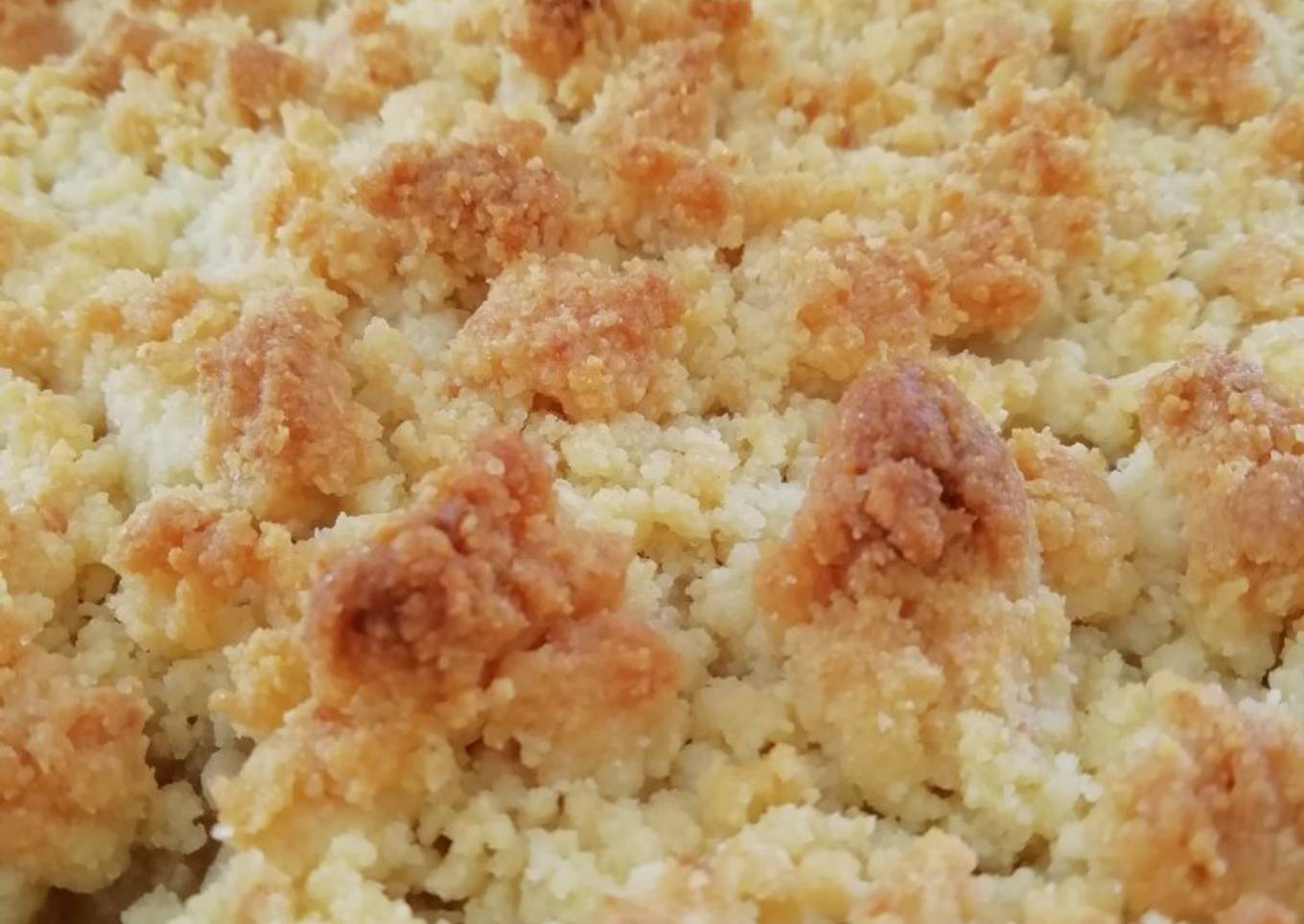 - Dans un plat allant au four : mettre la compoté de fruits au fond du plat et émietté la pâte à crumble