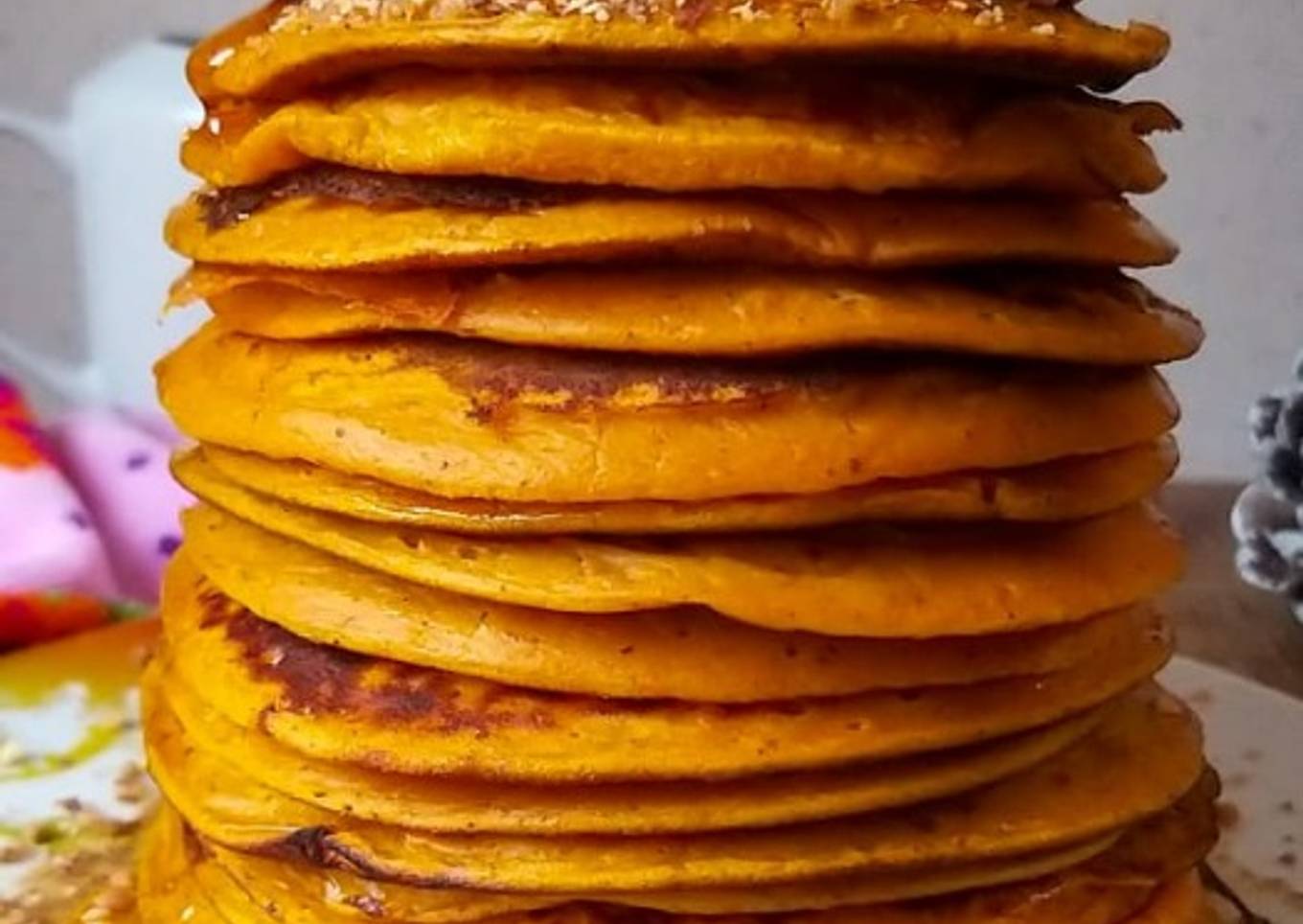 Hey everyone, I hope you are having an amazing day today. Today, we're going to make a distinctive dish, 🥞🎃Pancakes d'Halloween au Potiron🎃🥞. It is one of my favorites. This time, I am going to make it a little bit unique. This is gonna smell and look delicious.