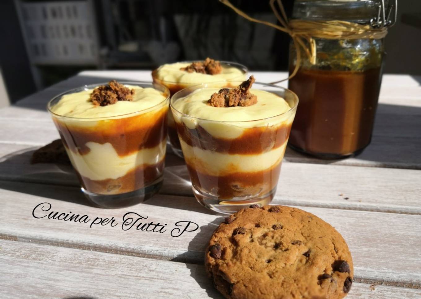 - Pour terminer la garniture, un peu de cookies sec émiettée sur le dessus, vous pouvez aussi ajouter un peu de caramel selon votre fantaisie déco. 😋 Régalez-vous